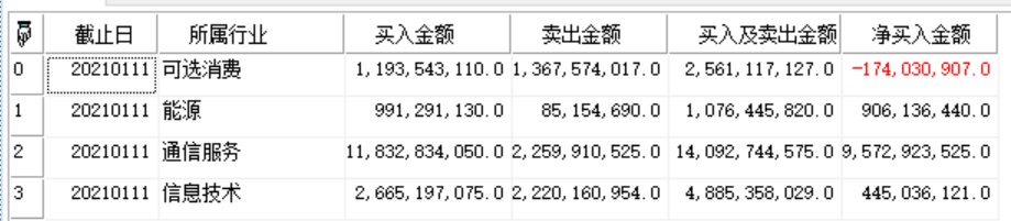 //返回港股通(沪)在指定日20210110-20210111区间的十大活跃股行业排名汇总