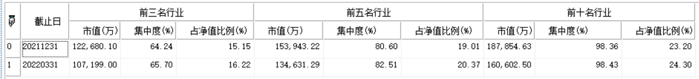 返回指定基金最近N个报告期的行业集中度数据,与系统参数(证券代码)相关。