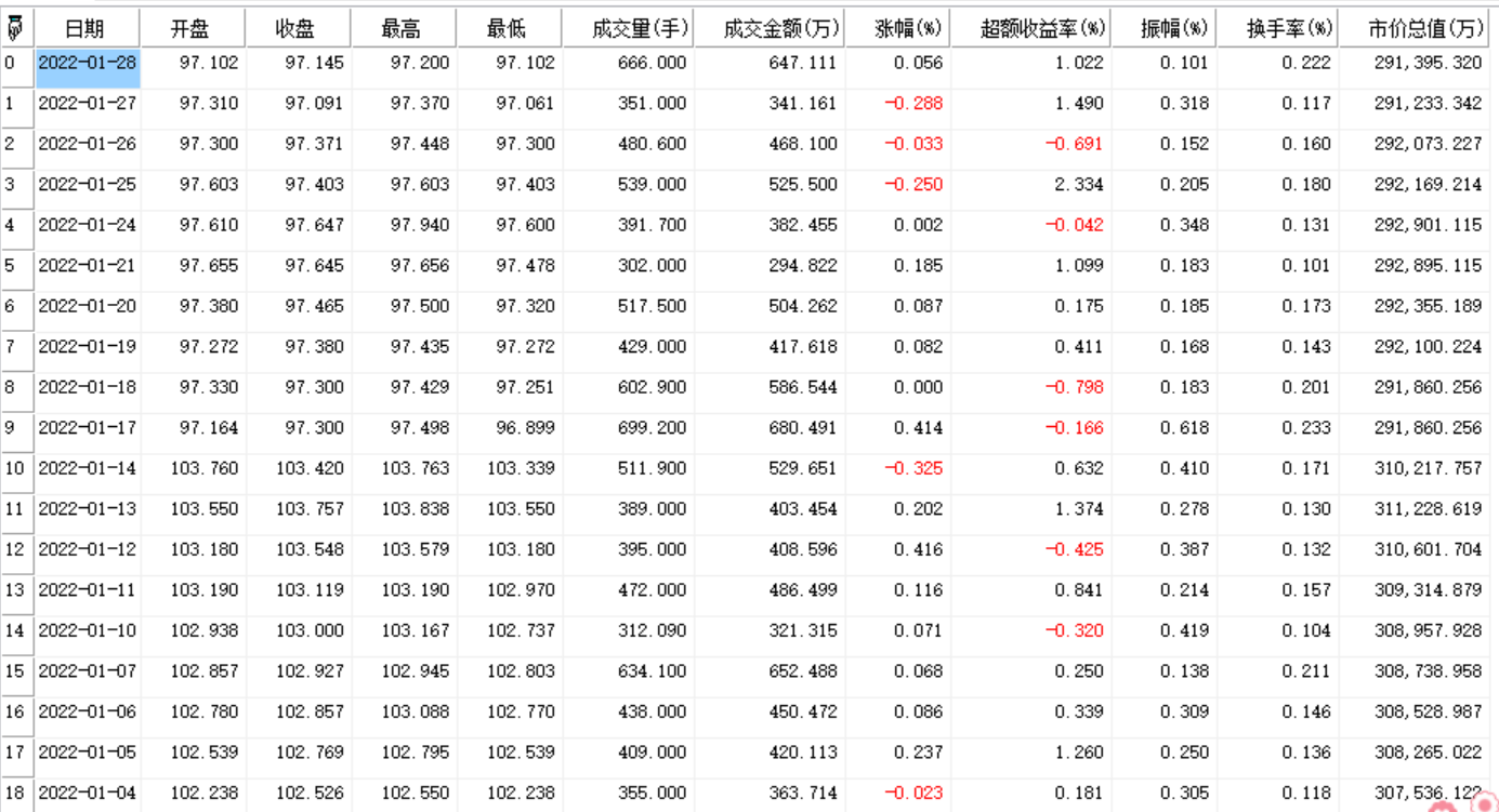 返回Array数组类型,返回指定基金指定日的历史交易数据。