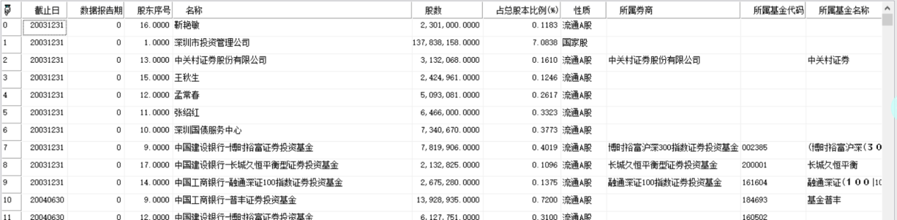 return ud_LoadTable('SavedUserDB');//其中SavedUserDB为已经保存好的平安银行的十大流通股东表用户数据