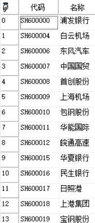 GetBK()函数教学函数。得到深证A股;上证A股板块下的股票代码和股票名称。