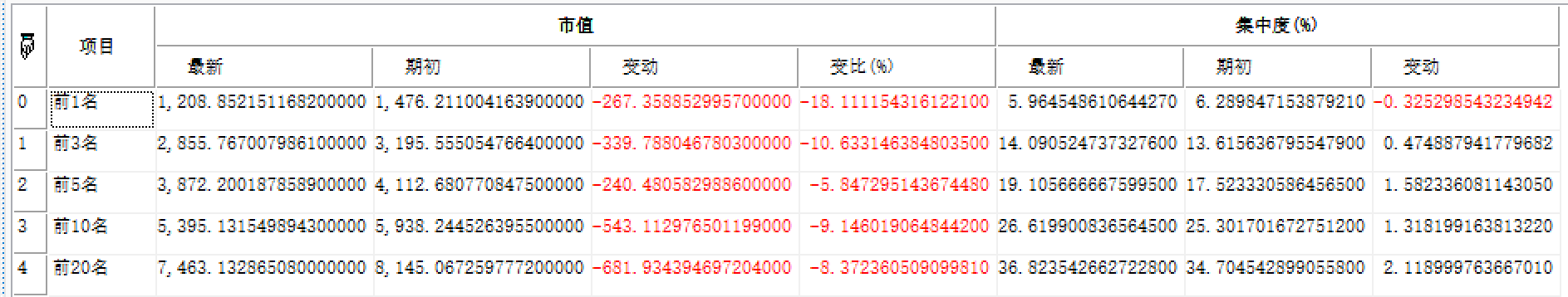 报表,获取陆股通的持股集中度及与期初变化(单位:亿元)
