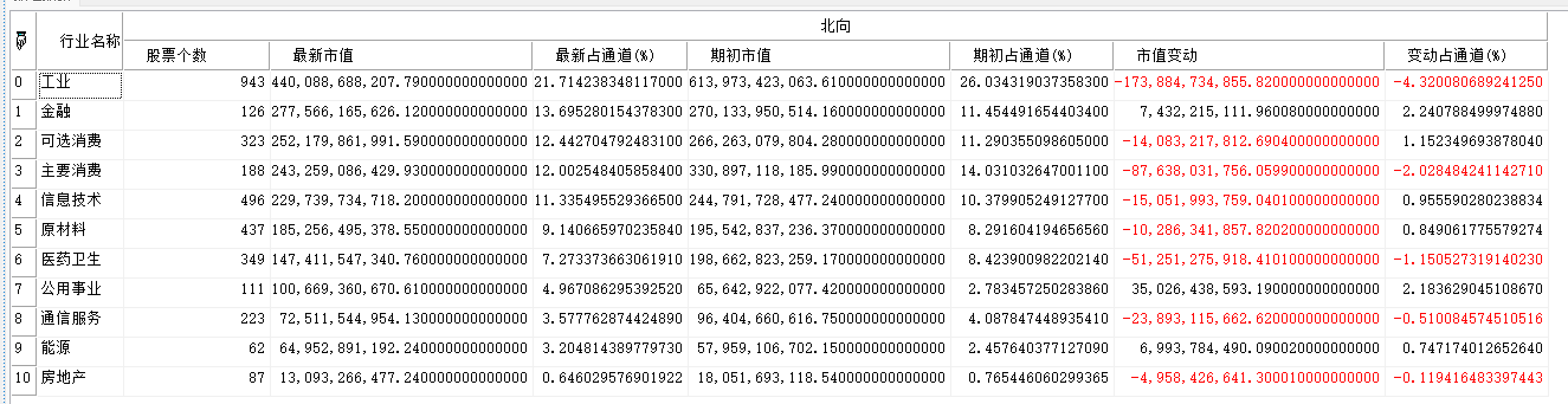 | 返回 | Array | 二维数组,陆股通区间行业配置及变动。 |