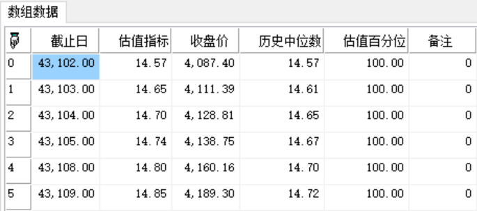 天软金融分析.NET函数大全 > 金融函数 > 指数 > 估值走势和百分位