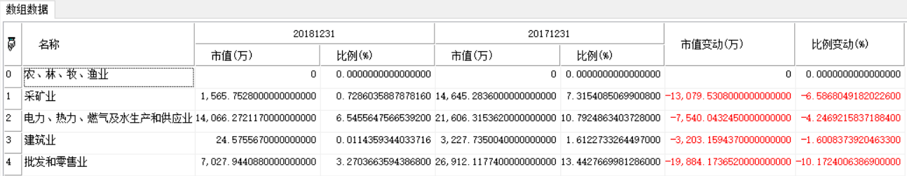 返回Array数组。基金行业配置及变化。