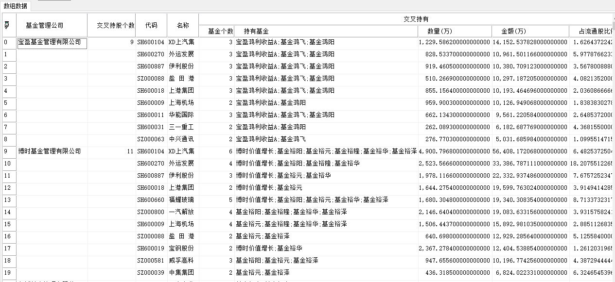 数组。所有基金管理公司交叉持股情况。