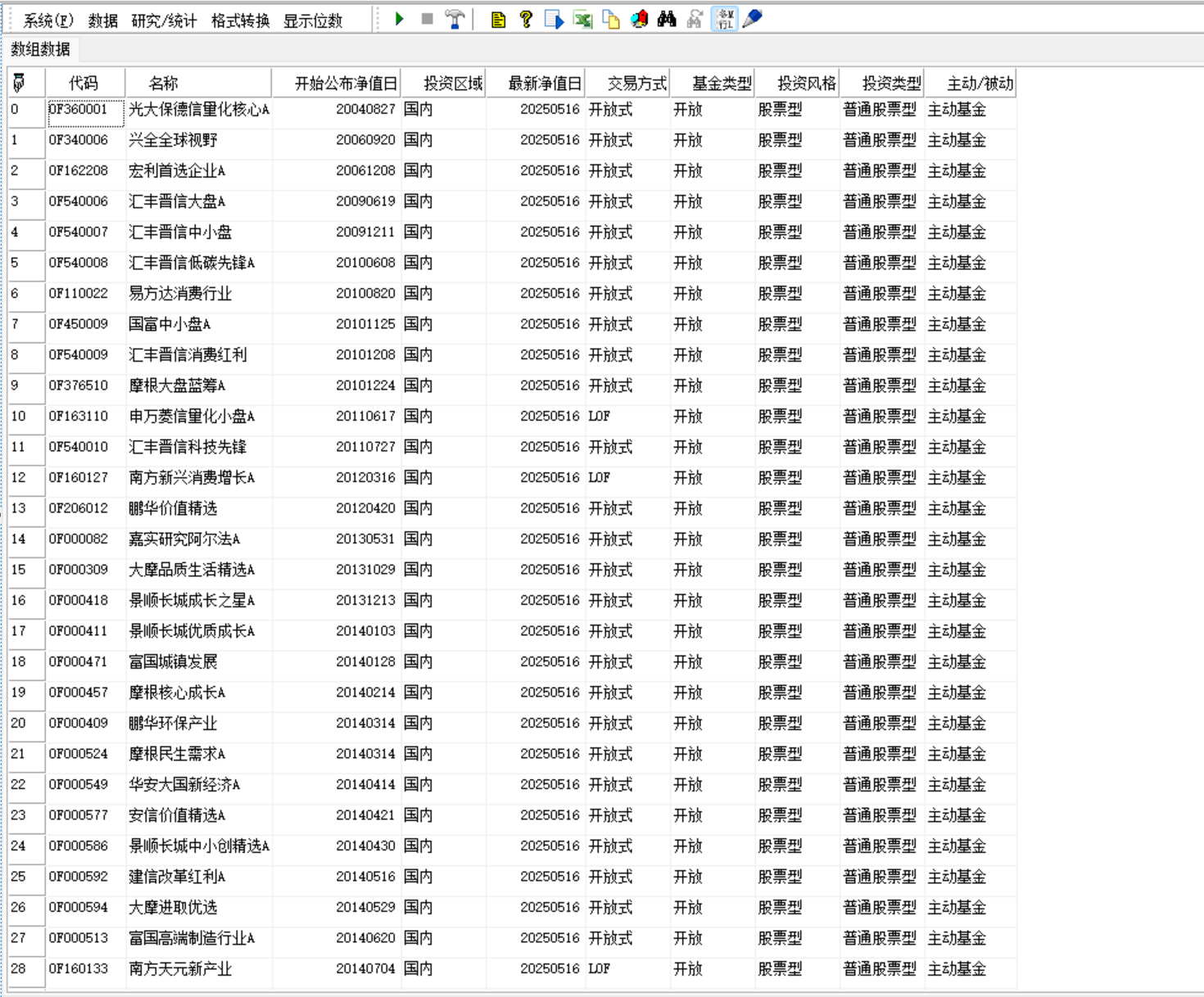 返回arrayarray,筛选后的基金表