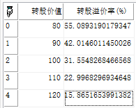 | Tvalues | array | 一维数组,待估转股价值数组,默认为array(80, 90, 100, 110,120)。 |