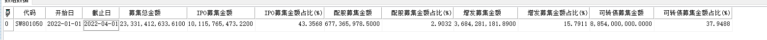 获取申万有色金属行业指数SW801050在2022-01-01~2022-04-01 一级市场股权募集资金指标