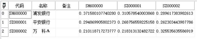 返回Array二维数组类型,股价涨幅-+相关性矩阵,其中行代码为-处理、列代码为+处理