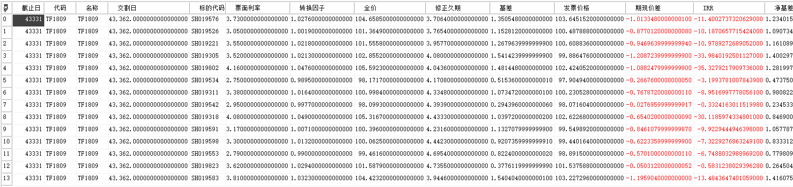 天软金融分析.NET函数大全 > 金融函数 > 专题函数 > 衍生品分析 > 期货专项 > 常用国债期货基本指标 > 基于债券估值